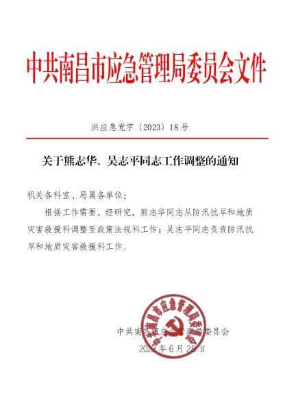 关于熊志华、吴志平同志工作调整的通知 | 南昌市应急管理局-888棋牌游戏
